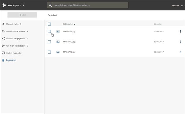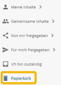 Öffnen Sie den Papierkorb, indem Sie den Papierkorb-Knoten im Navigationsbereich anklicken.