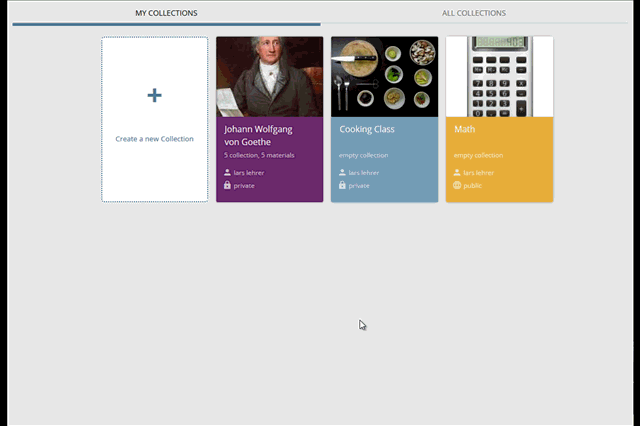 - Öffentlich - beinhaltet alle für jeden Nutzer sichtbaren Sammlungen, die keine redaktionellen Sammlungen sind. Bei Repositorien mit einem öffentlichen Bereich (z.B. OER Suchmaschinen) sind dies gleichzeitig alle für den Gast sichtbaren Sammlungen.