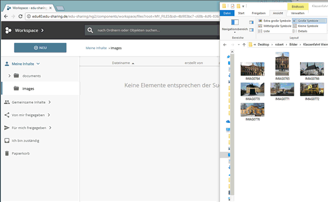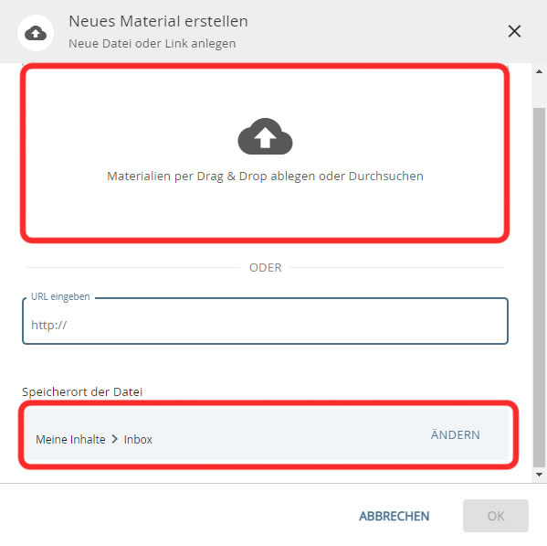 Es öffnet sich ein neues Fenster, klicken sie auf die Schaltfläche "Materialien per Drag&Drop...". Ihr lokales Dateisystem wird in einem neuen Fenster geöffnet.