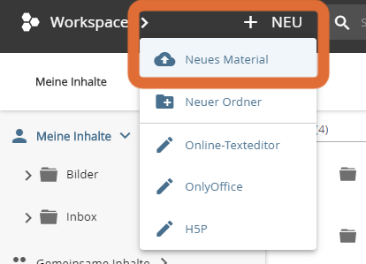 Schaltfläche zum Erstellen eines neuen Objektes in edu-sharing