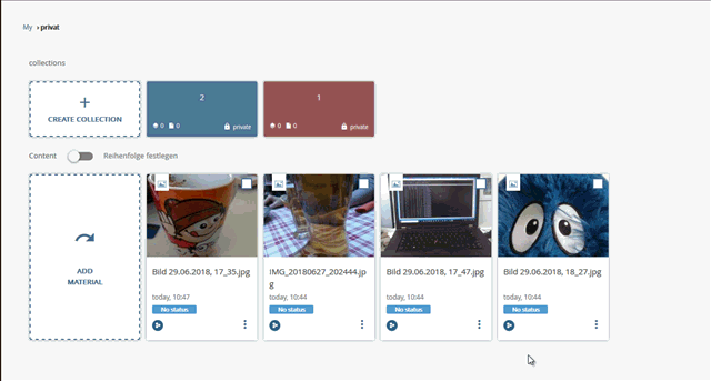 Die Vorschau-Bilder der Sammlungs-Inhalte fangen an zu "kippeln". Nun können Sie die Reihenfolge einfach per drag&drop anpassen.