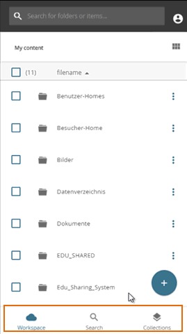 Die edu-sharing App bietet alle Ansichten des edu-sharing Systems - angepasst für mobile Endgeräte: