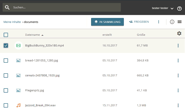 Dieser Bereich des Workspace zeigt nähere Informationen zum aktuell im Inhalte-Bereich ausgewählten Objekt.