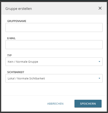 Wenn Sie auf die Schaltfläche klicken, wird eine neue Benutzeroberfläche geöffnet, die Sie nach einem Gruppennamen einer Mail-Adresse, einem Gruppentyp und der Sichtbarkeit der Gruppe fragt.