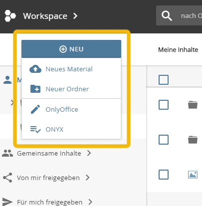 Ordner können in edu-sharing mit Hilfe des Workspace und der edu-sharing App oder via WebDAV angelegt werden.
