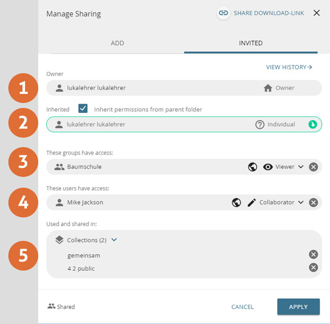 - Collaborative collections are an exception: Here you can set exactly who gets which access rights to the collection when you invite them.