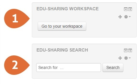 - edu-sharing search – This block enables users to search in the edu-sharing repository (and optionally connected content sources) directly from the course context of moodle.