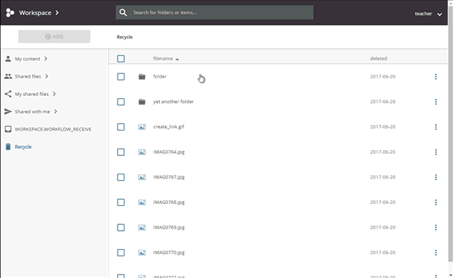 Open the recycle bin by clicking the corresponding node in the navigation area.