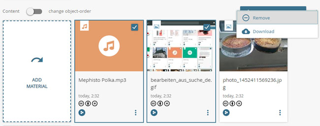 To remove more than one object from a collection, check the objects and open the context menu above the Contents pane. Select the "Remove" option.