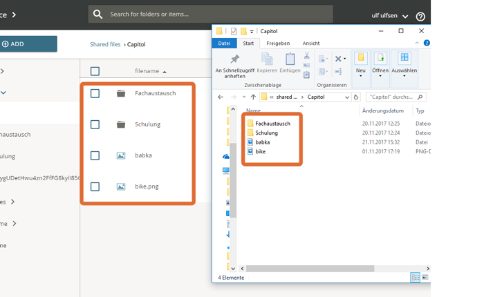 Shared content can also be used via WebDAV. This allows you to directly open content in Microsoft Word, make changes and save the object again without downloading and uploading it again.