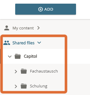 "shared content" node with organisation folder "Baumschule"