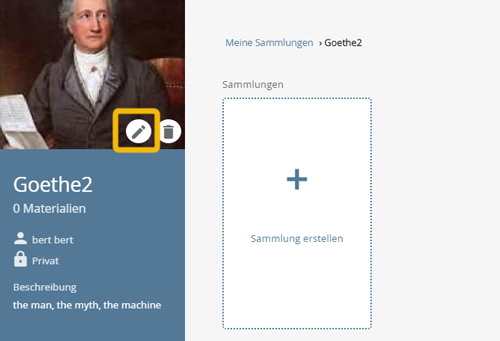 Users with sufficient permissions (owner or coordinator) click the corresponding button in the detail view of the collection.