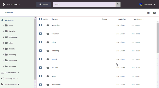 A special feature of the folder in the “shard content” area is that the access rights for the basic structure will usually be assigned by an administrator. That is why you may have fewer rights for folders and objects than in your private folders.