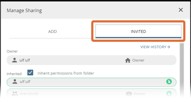 The view to grant access rights / invitations will be opened.