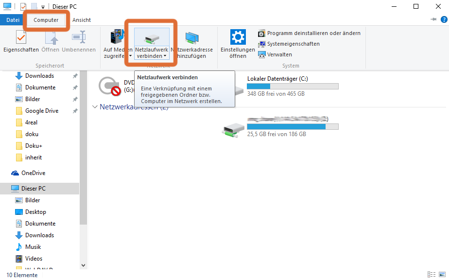 Ouvrez l'Explorateur Windows. Ouvrez la section "Ce PC". Dans le menu en haut, sélectionnez "Ordinateur" et "Connecter un lecteur réseau".