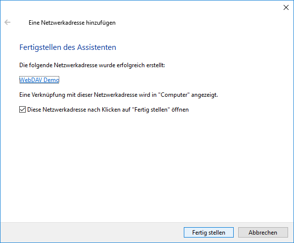 Veuillez noter que Windows n'autorise pas les connexions WebDAV avec des serveurs ne disposant pas d'un certificat SSL.