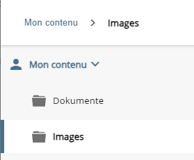 Le volet Contenu revient au dossier d'origine de l'objet sélectionné. Si l'objet provient de la zone « Mes contenus », le dossier d'origine est également développé et marqué dans le volet de navigation.