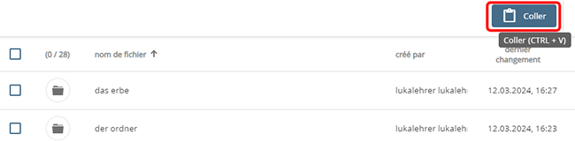 L'insertion de plusieurs dossiers fonctionne de la même manière que pour un seul dossier. Naviguez jusqu'au nouveau dossier de destination et cliquez sur le bouton "COLLER" en haut à droite de la zone de contenu.