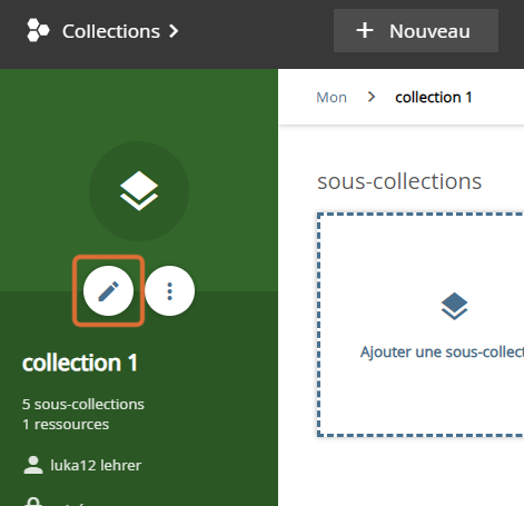 Ouvrez la collection souhaitée. Dans le champ de l'image d'aperçu, vous trouverez le bouton pour éditer la collection.