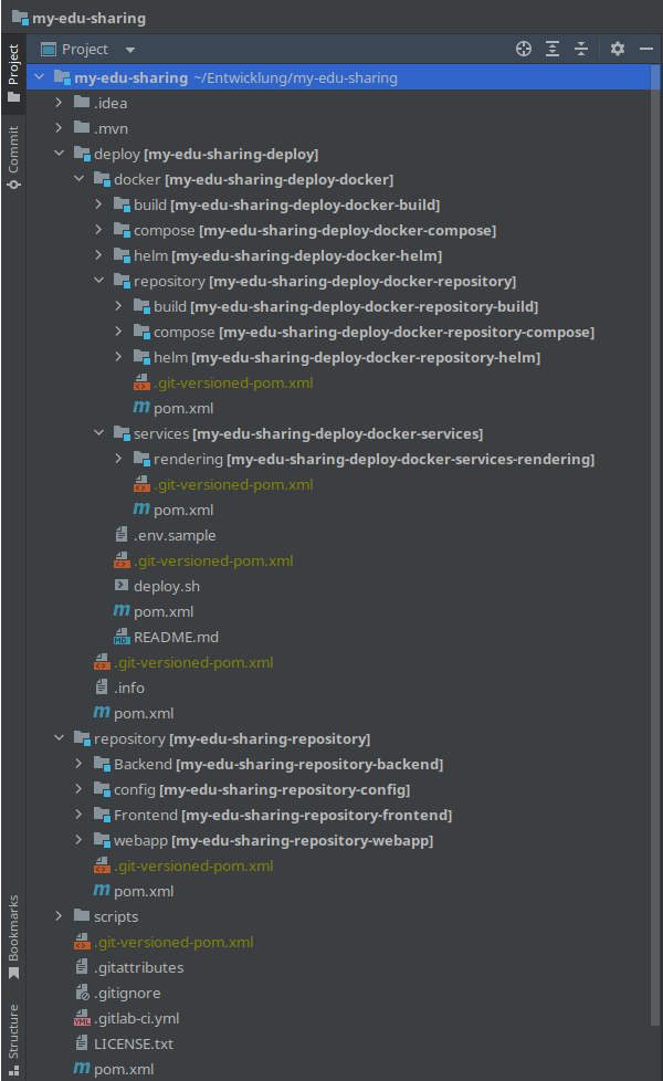If you want to modify the existing core modules of edu-sharing the best practice is to create a fork of the desired github repos and check them out in the same parent folder as your deploy project.