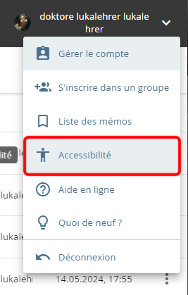 Les options d'accessibilité peuvent être paramétrées dans le profil.