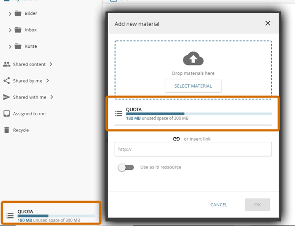 Nutzer Quota verwalten